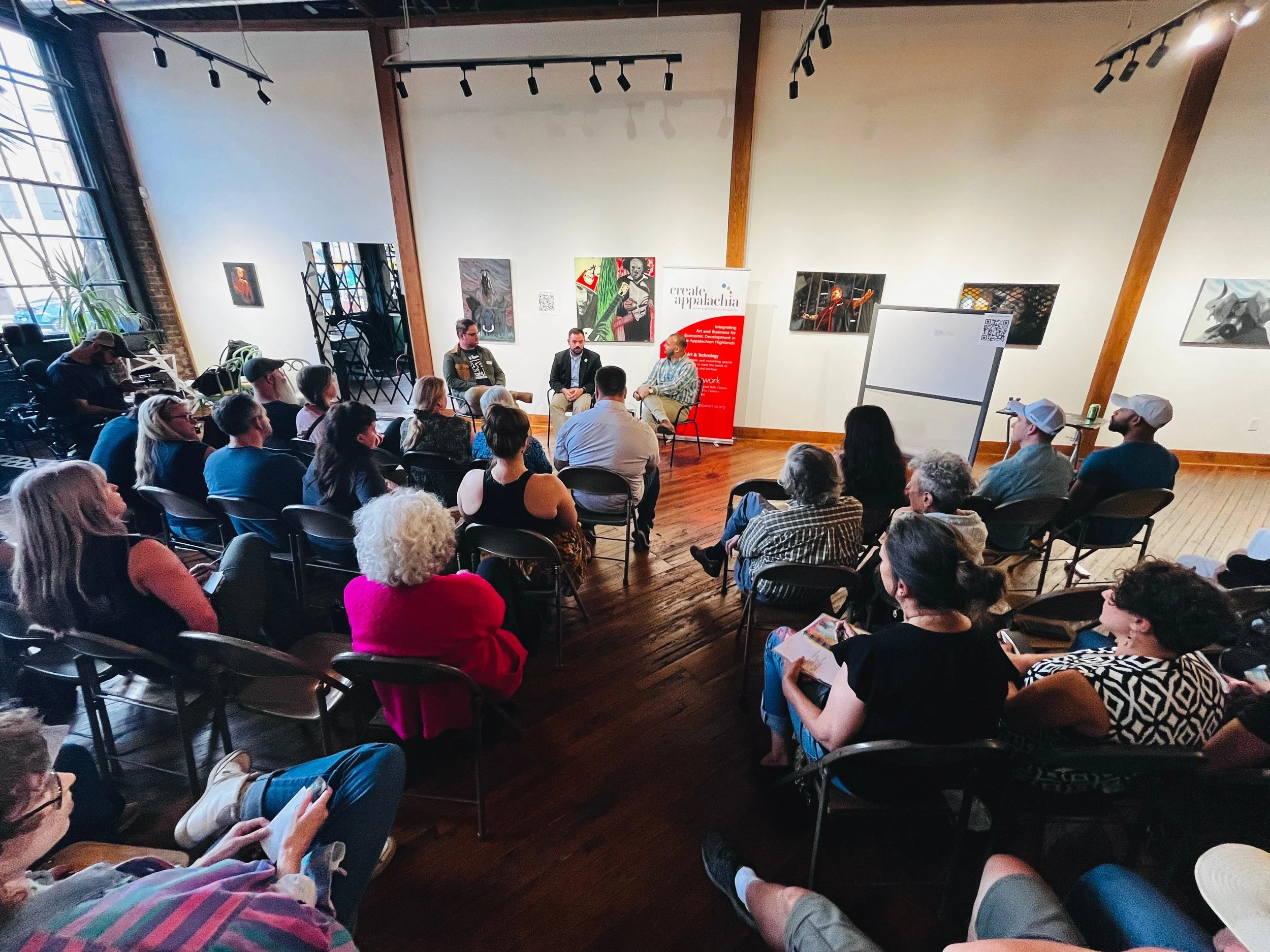 In 2025, Create Appalachia asked regional creatives critical questions about what it means to work in Appalachia. I helped design, promote, and facilitate the listening effort, which combined an in-person session at Fischman Gallery in Johnson City with a broader digital survey.